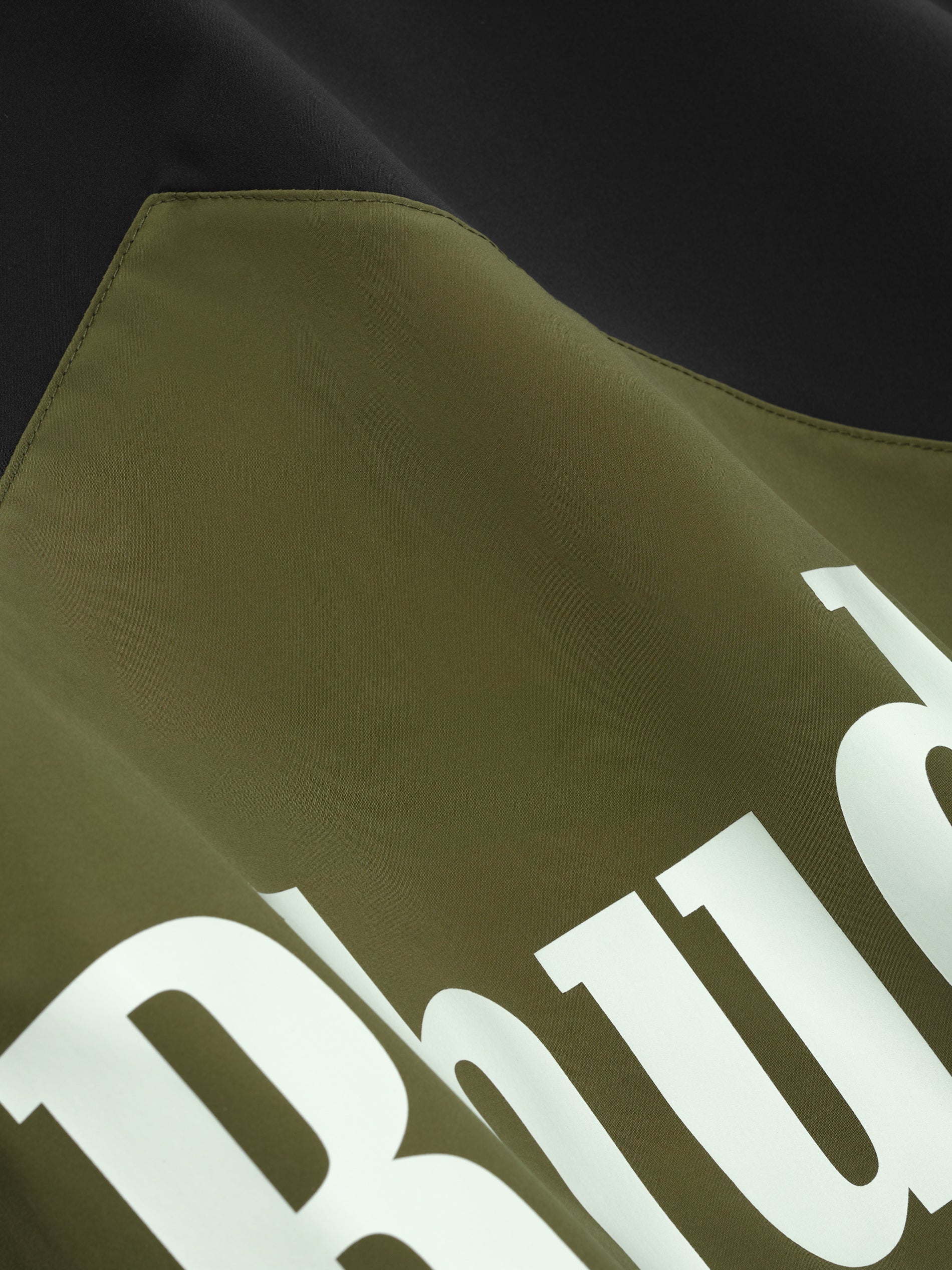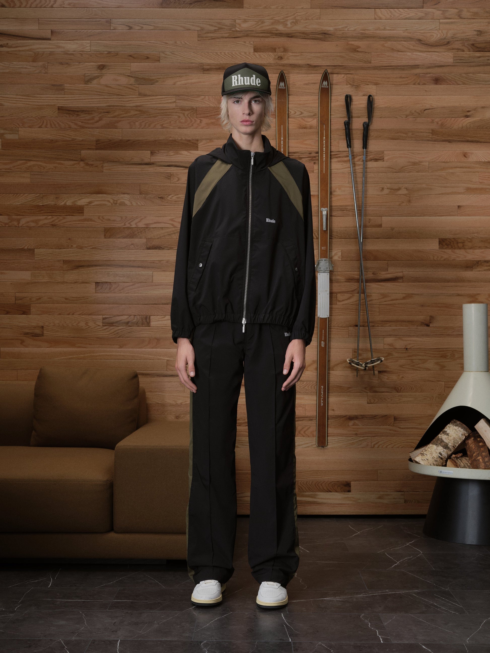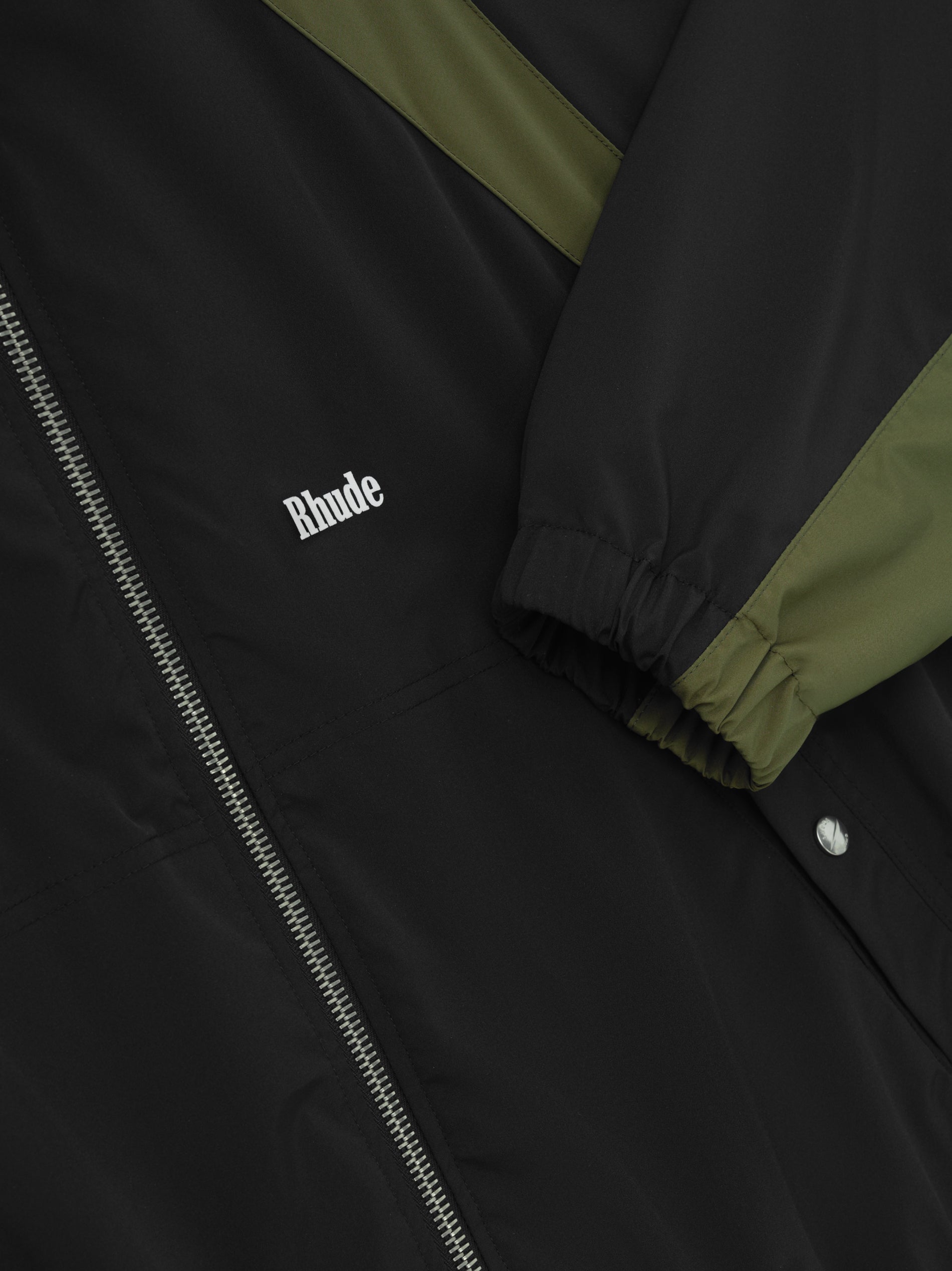 Premium flyweight poly jacket, features a dual-panel chevron construction with Custom two-way Rhude Pill zipper closure.