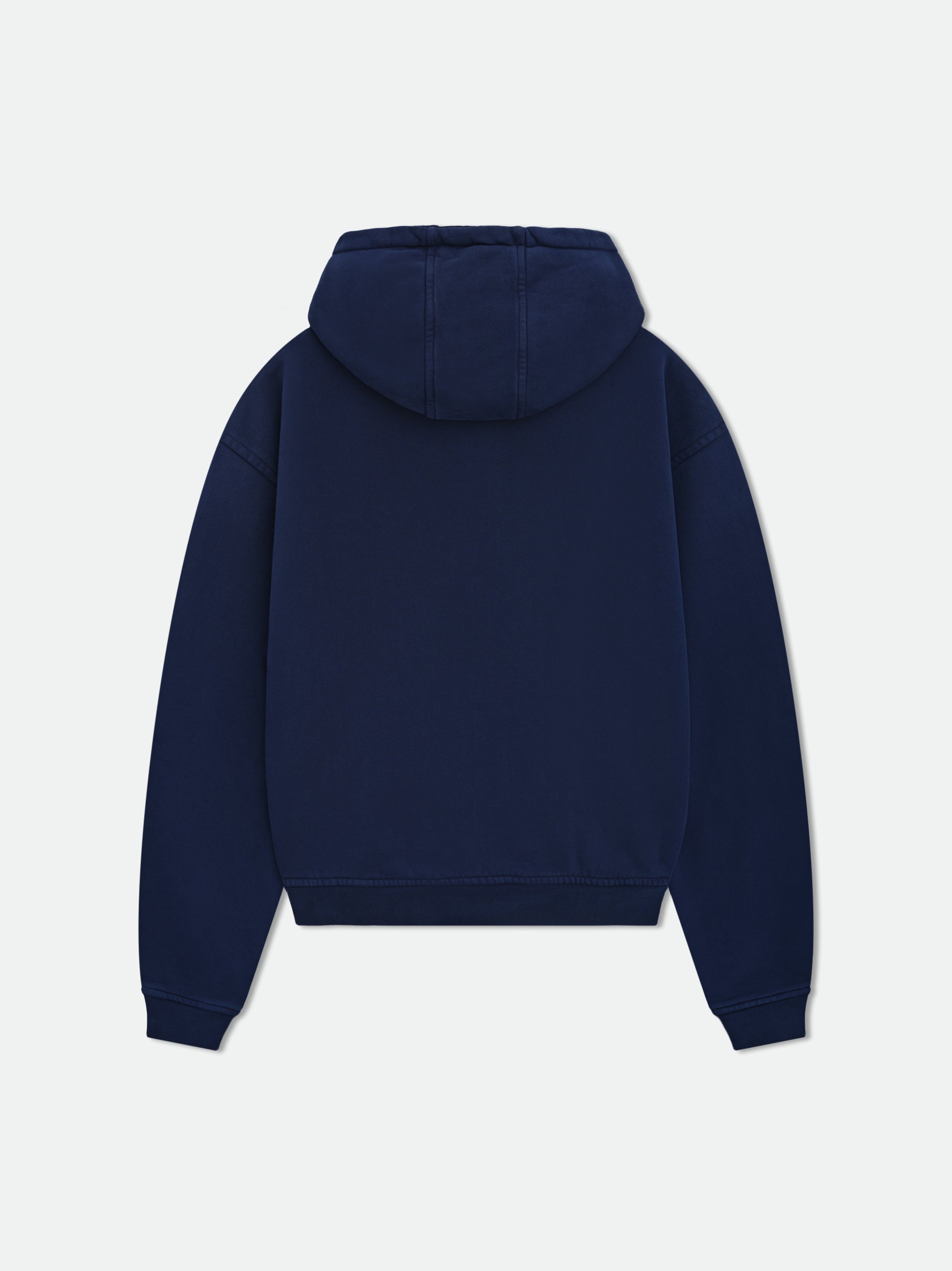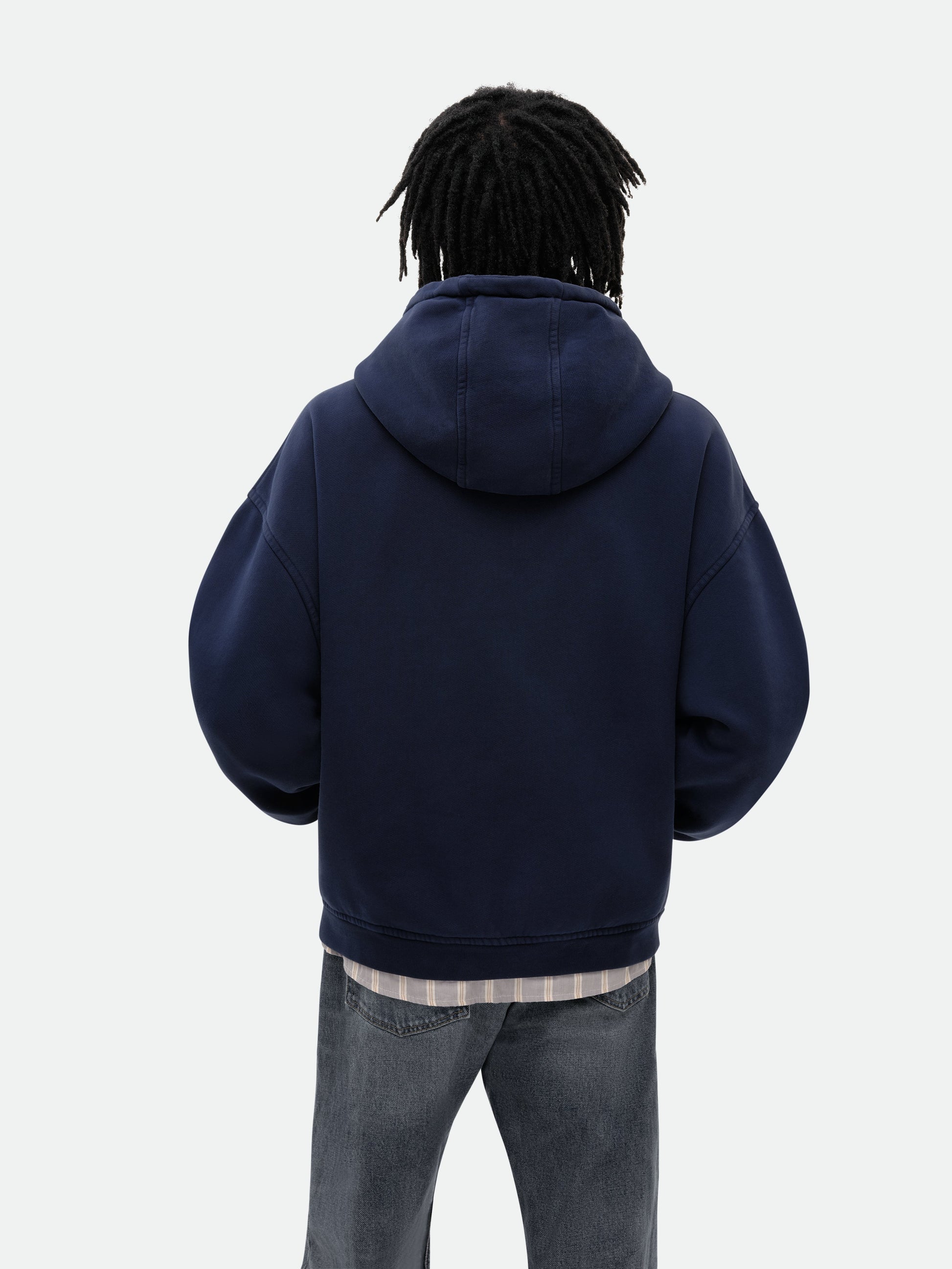 Long sleeve French Terry hoodie Bordeaux graphics printed on the front, Rhude embroidered crest at chest, and a clean back. Featuring a kangaroo front pocket and dropped shoulders. Each piece is unique and print distressing my vary per style.
