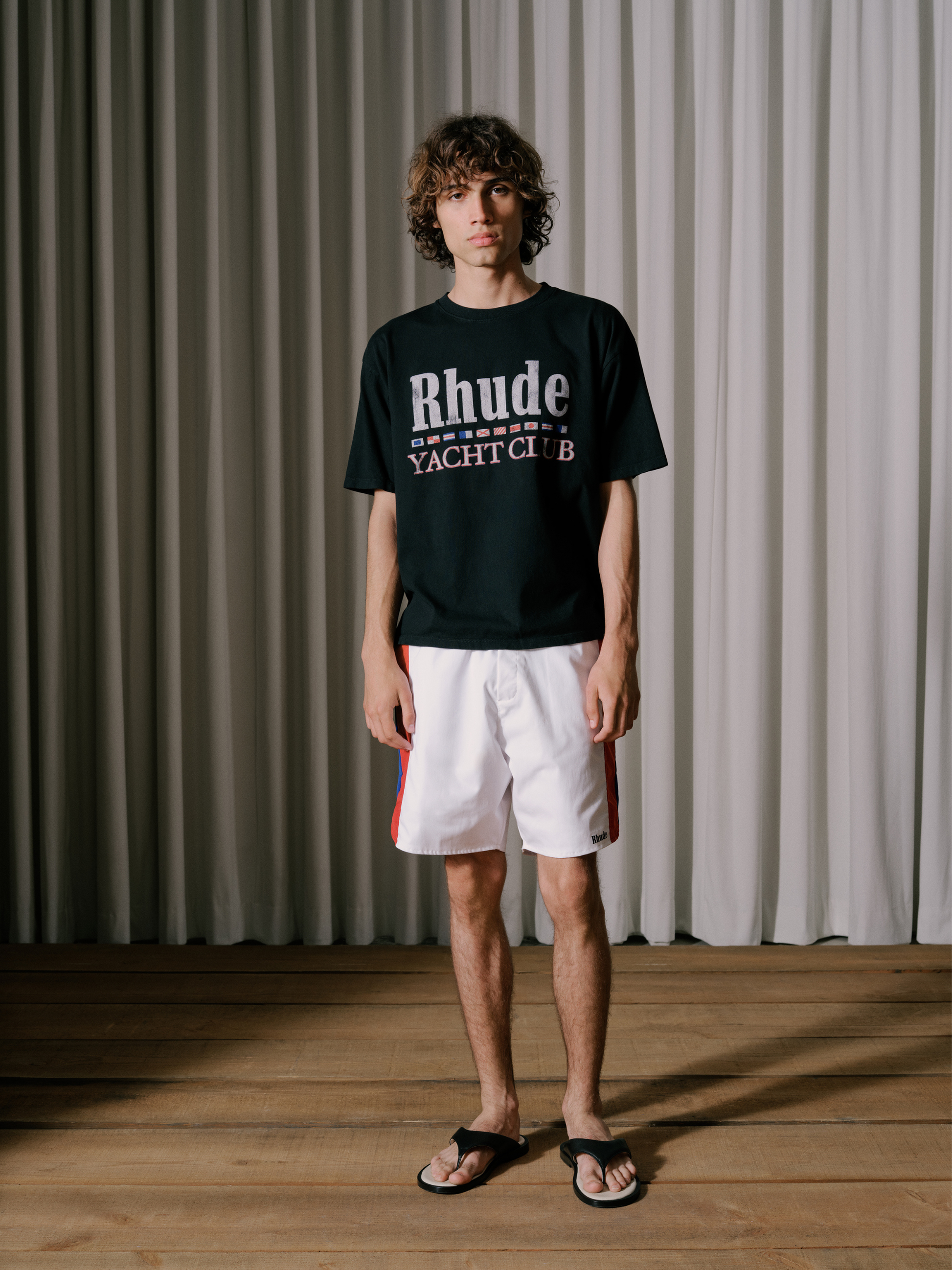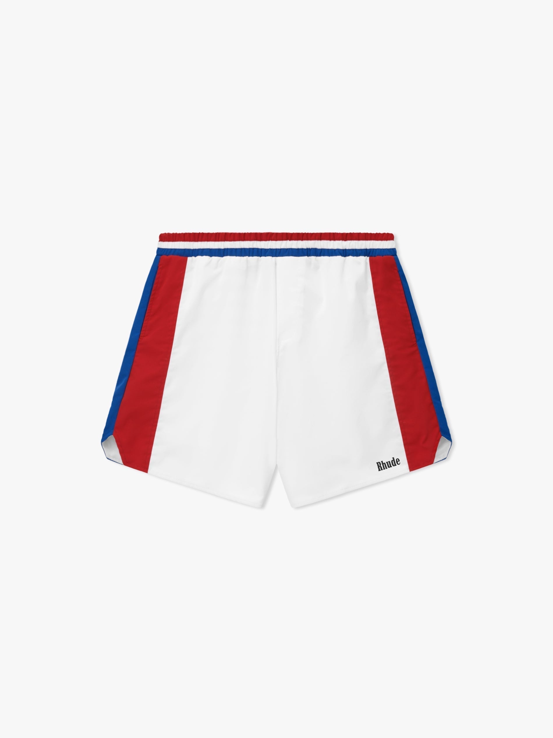Lightweight track short with signature Rhude logo displayed on the front.