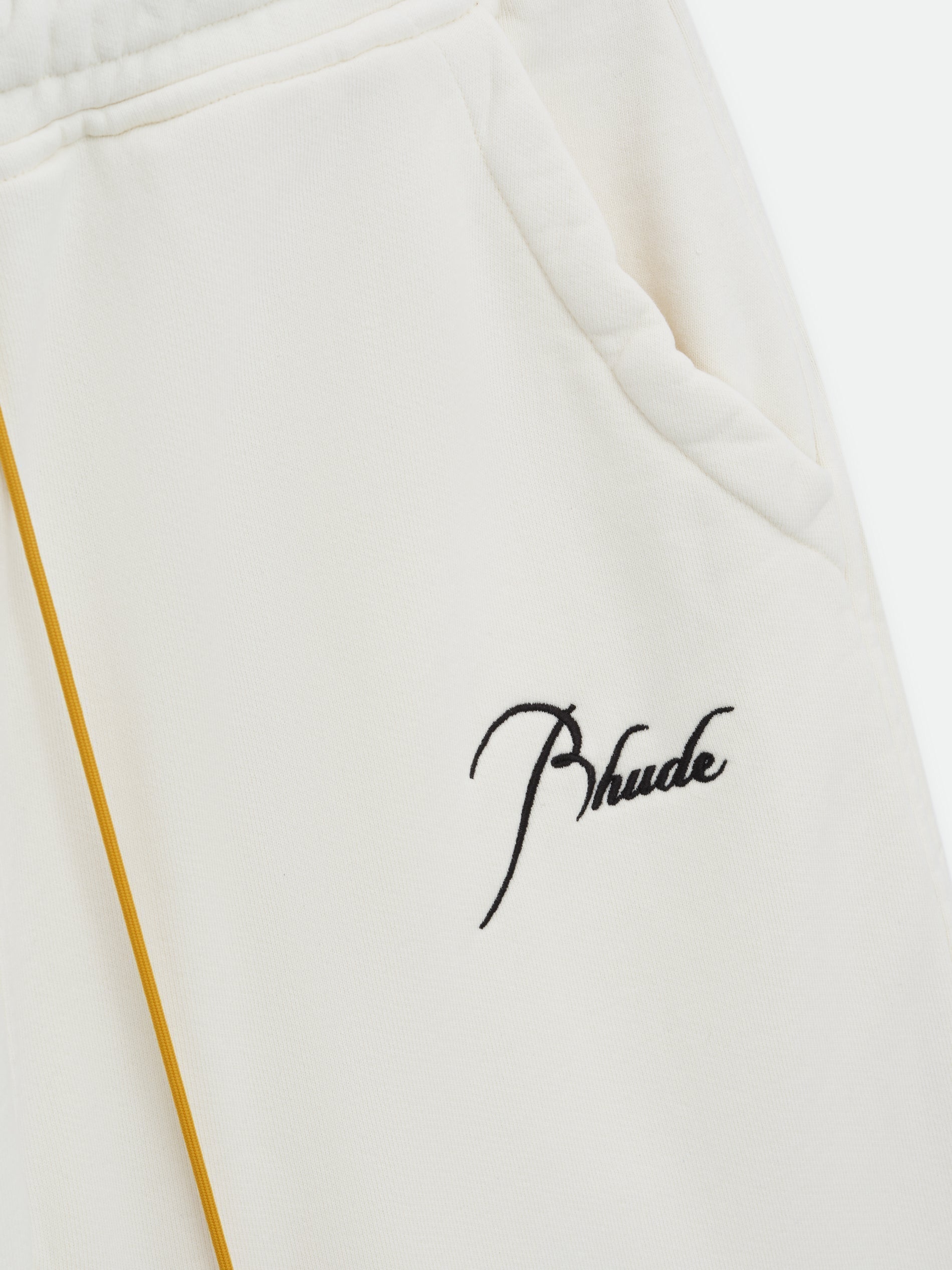 Heavyweight terry sweatpant with signature Rhude script logo embroidered on the front featuring our exaggerated drawstrings in mustard tone.