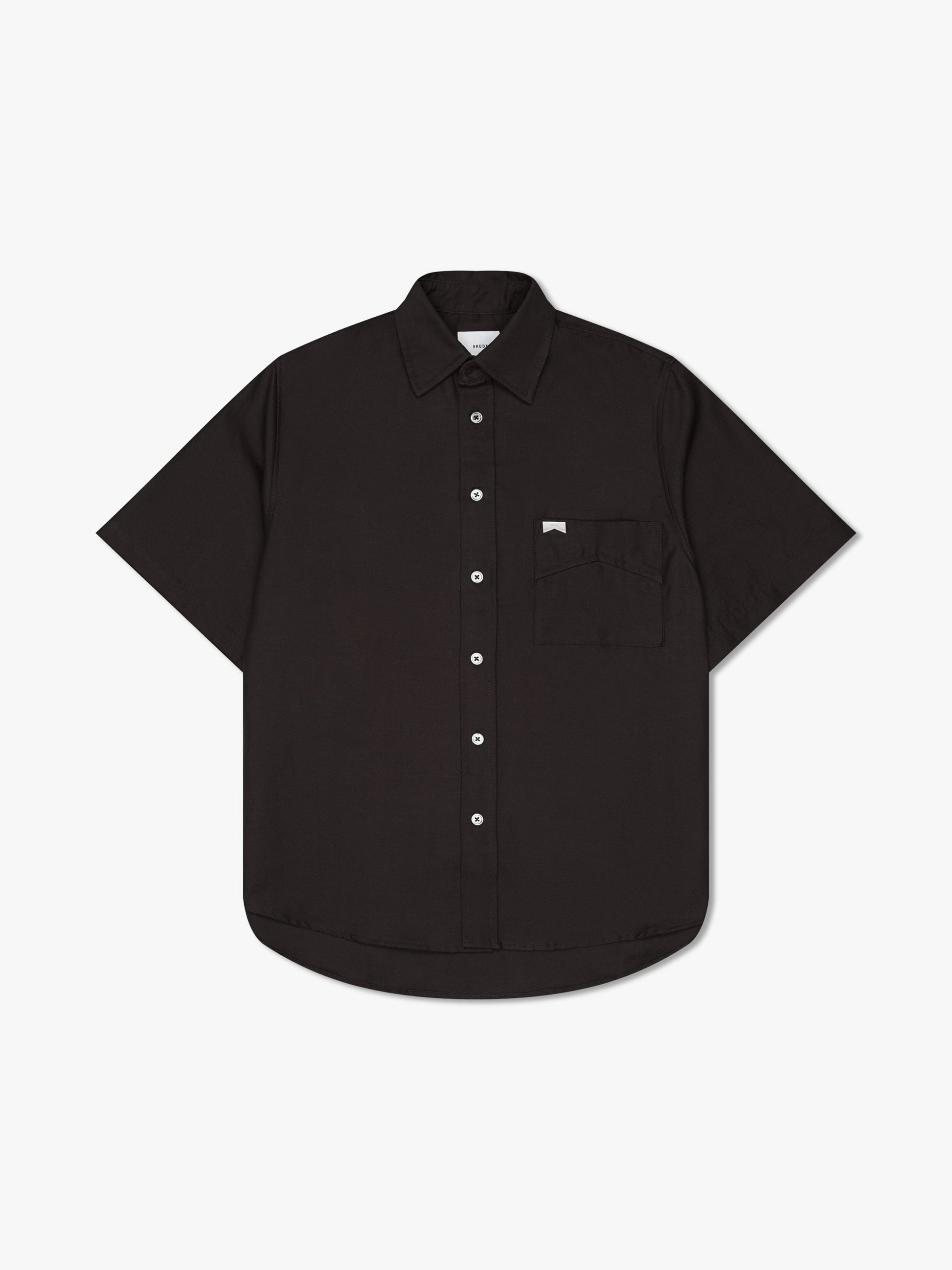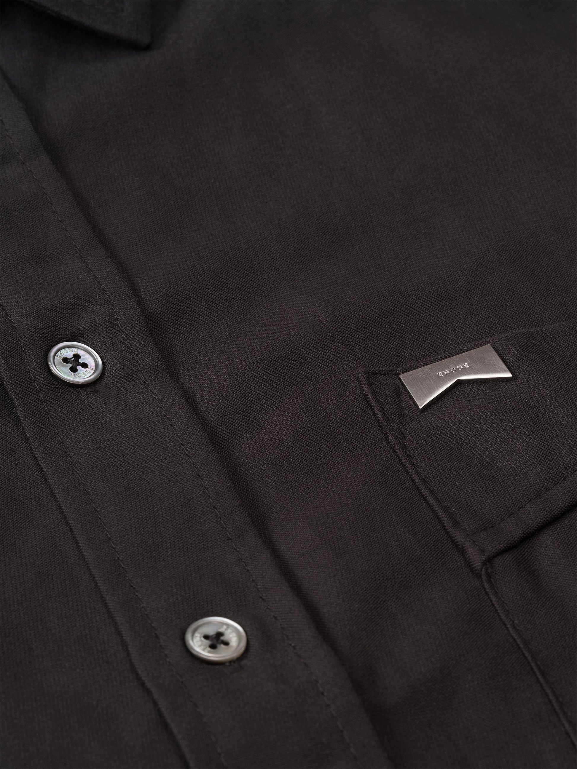 Classic button up shirt crafted from a lightweight and breathable cotton linen blend. Featuring a flat hem, custom button closures at front, and RHUDE chevron hardware logo at front chest pocket.