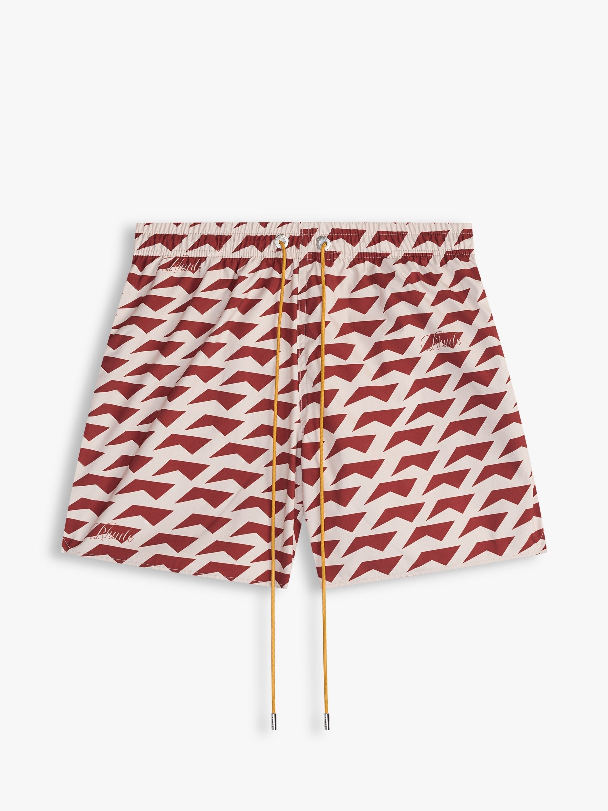 Premium monogram dolce vita swim shorts featuring an elasticated waistband, twin side pockets, and singular back pocket. Exaggerated front drawstrings in our signature Mustard tone.