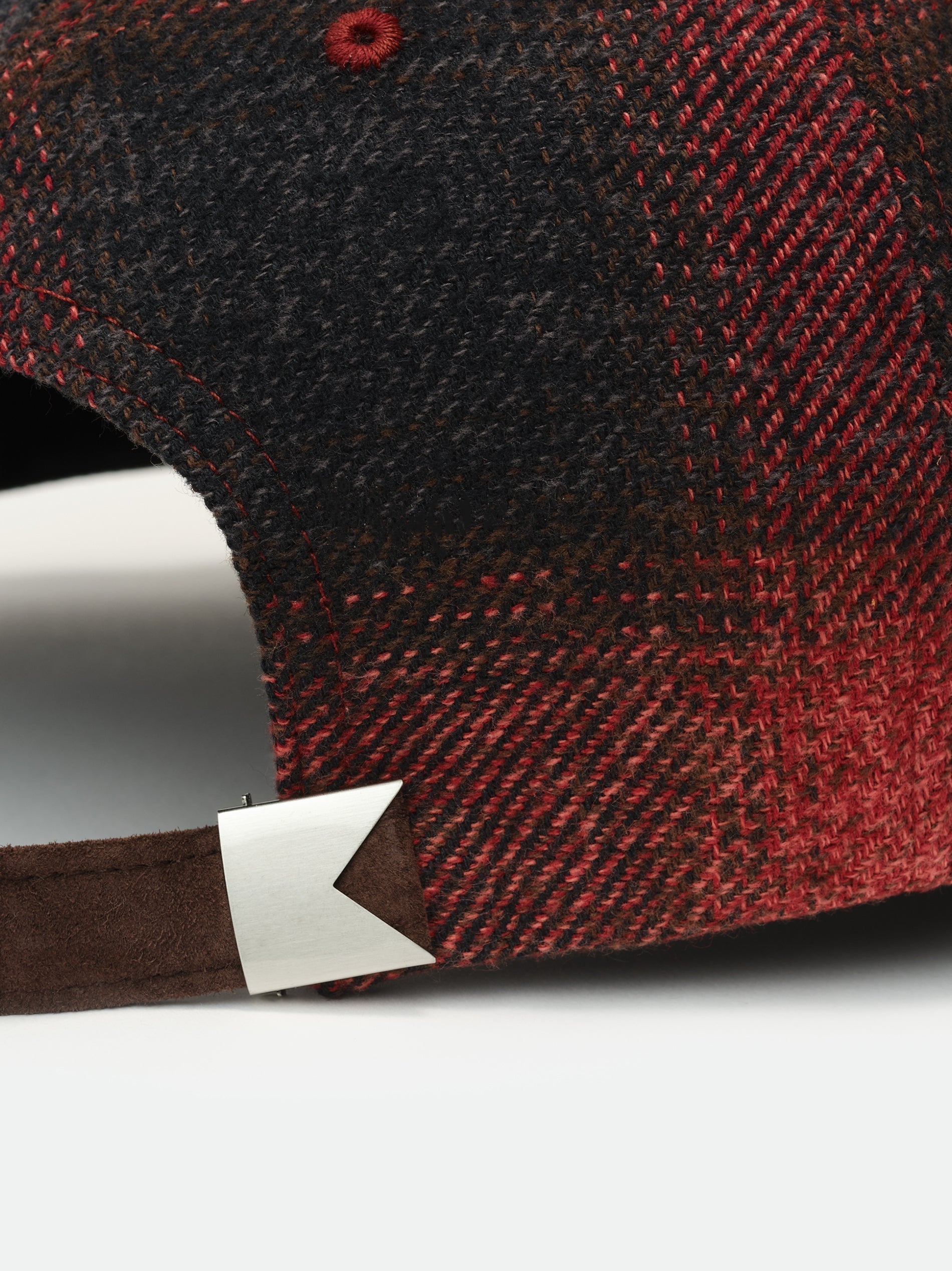 Heavyweight vintage flannel adjustable cap with “R” embroidered on the front. Featuring a wool brim, wool button at crown, and custom Rhude hardware.