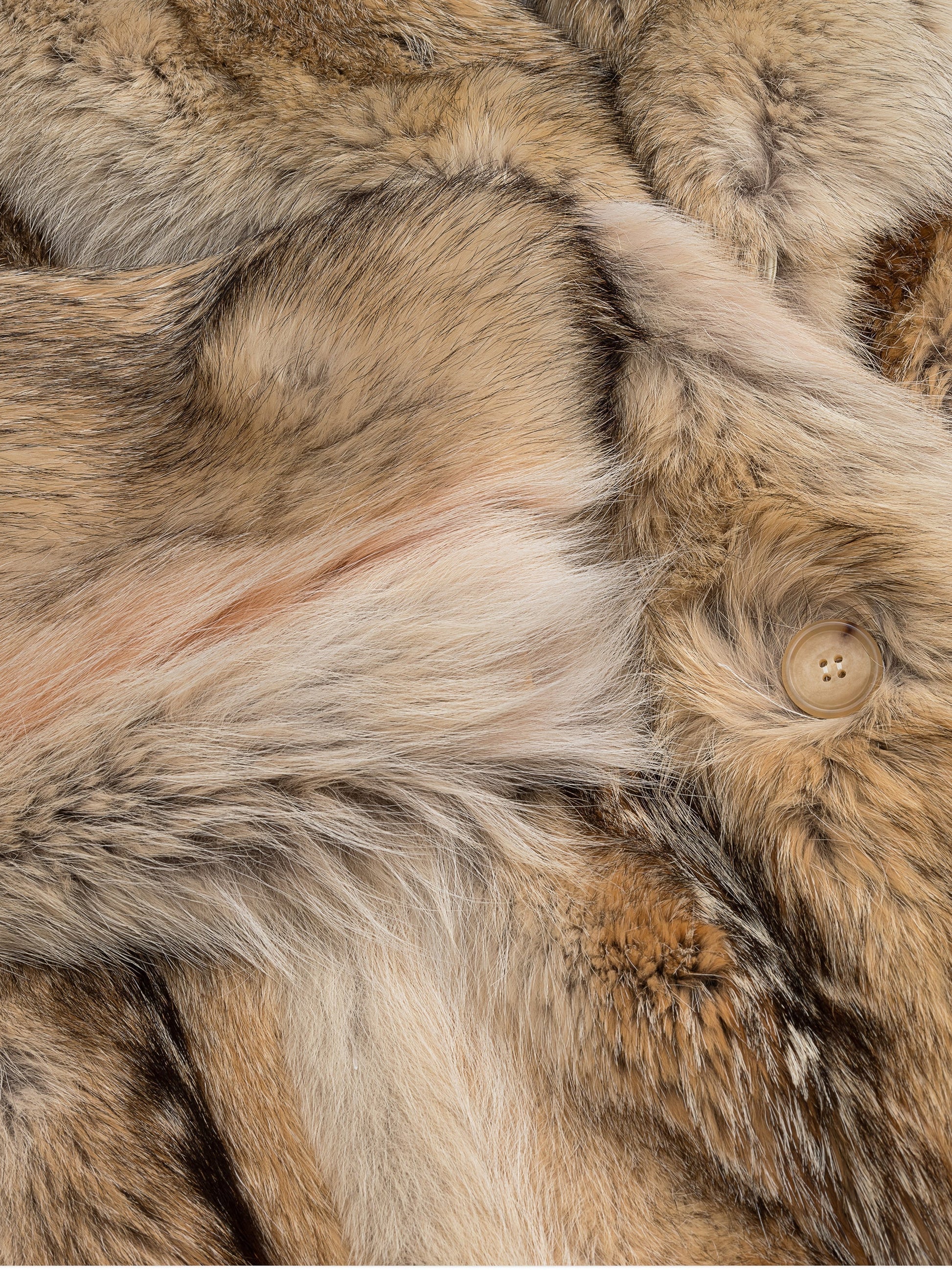 This coat is made with ethically sourced vintage Murmansk Wolf fur, known for its softness and texture, ensuring a cozy, luxurious feel.