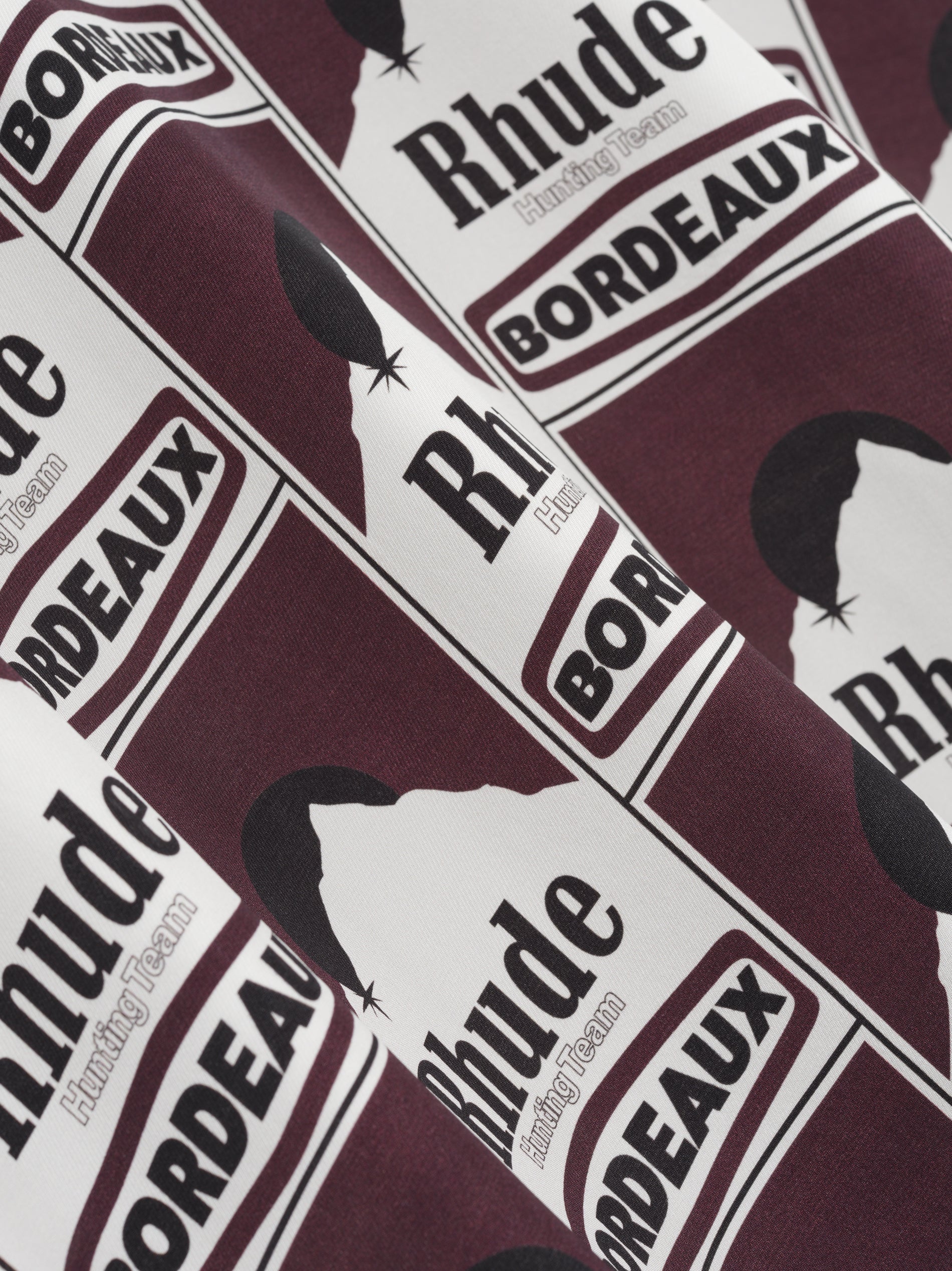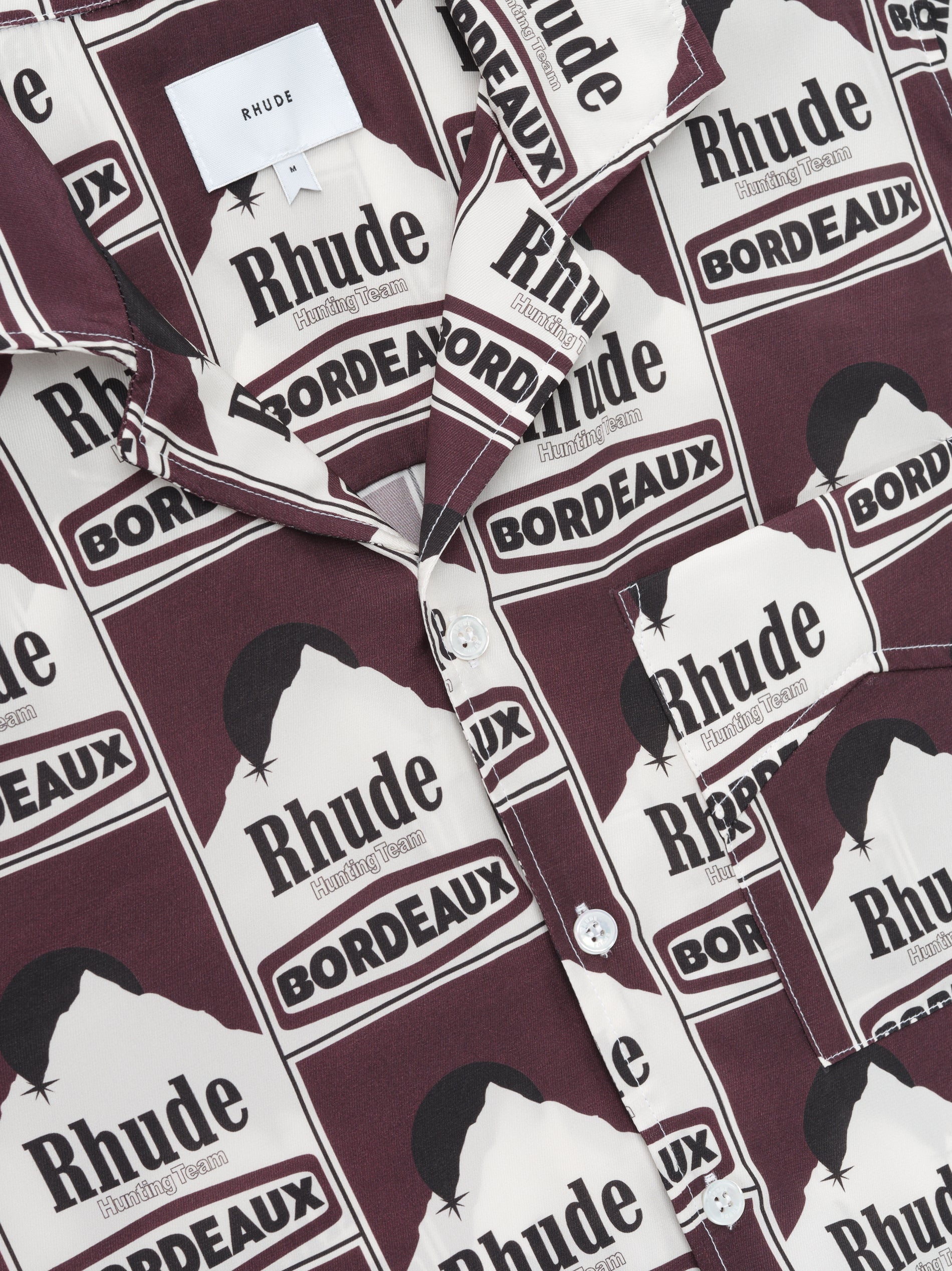 Classic button up shirt crafted from premium quality silk. Featuring a flat hem, custom button closures at front, and RHUDE bordeaux moonlight designs all over.