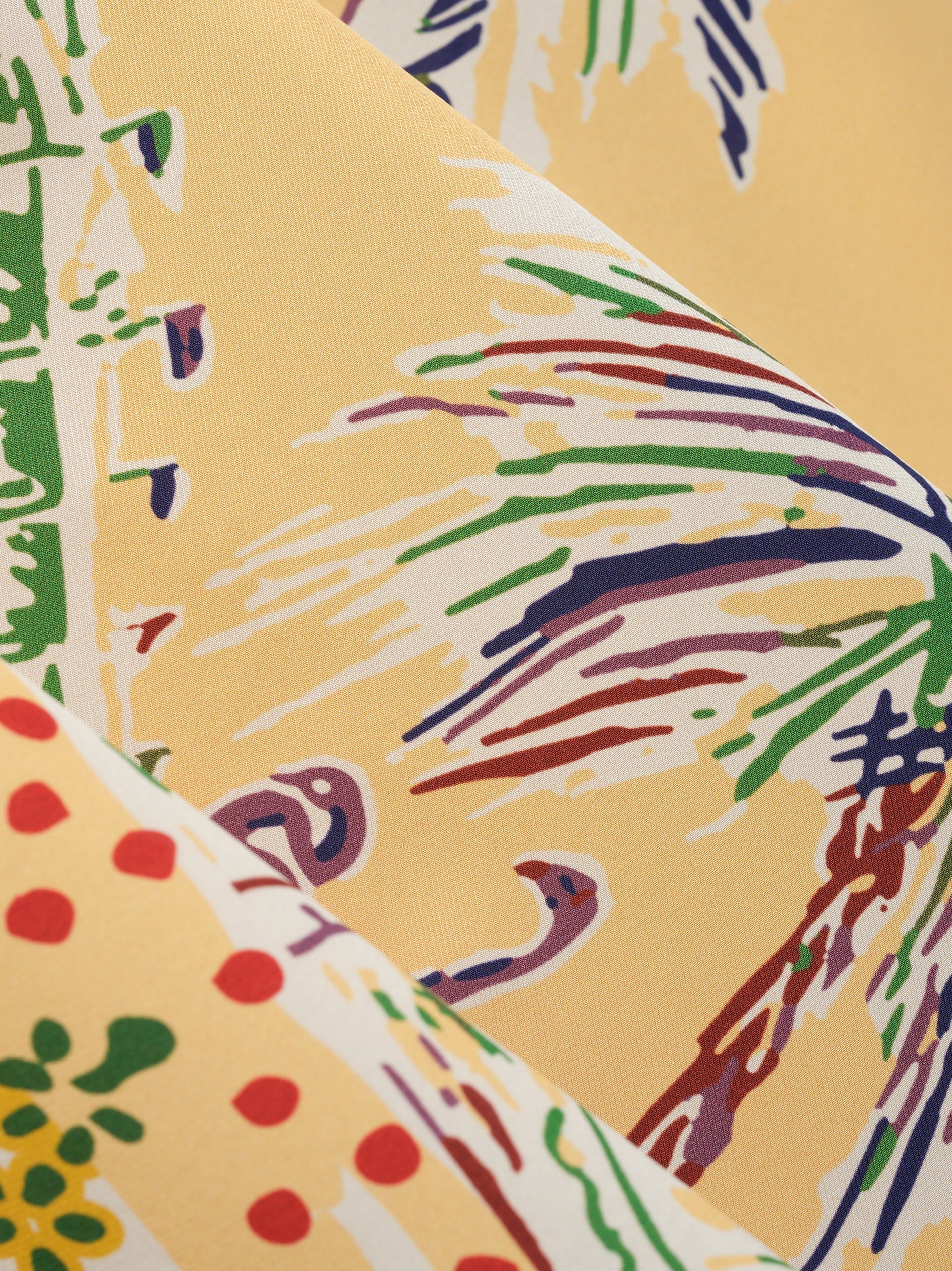 Classic button up shirt crafted from premium quality silk. Featuring a flat hem, custom button closures at front, and RHUDE palm tree island inspired designs all over.
