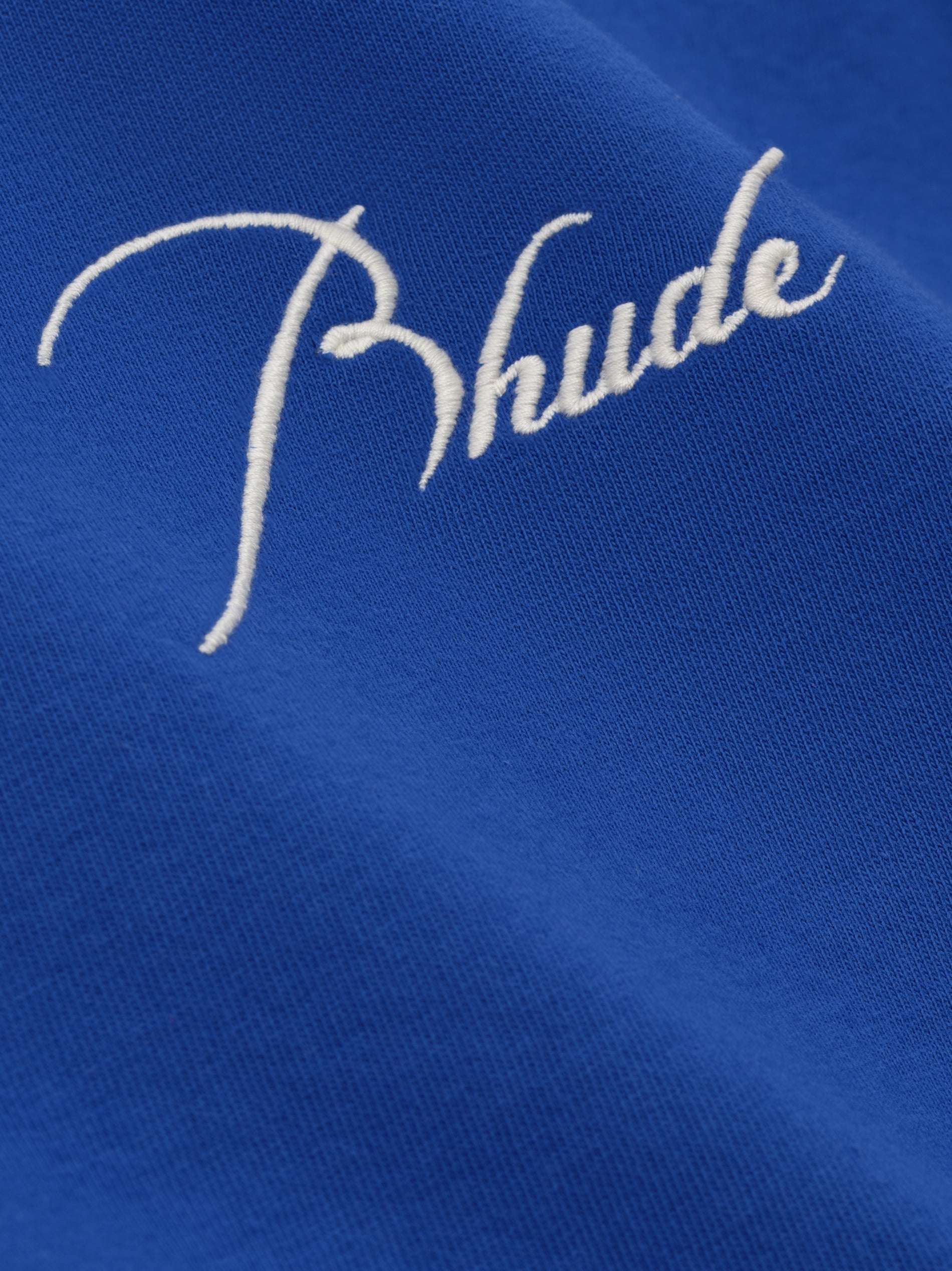 Custom-fit vintage wash cotton short sleeve tee-shirt with Rhude Signature logo embroidered on the front.