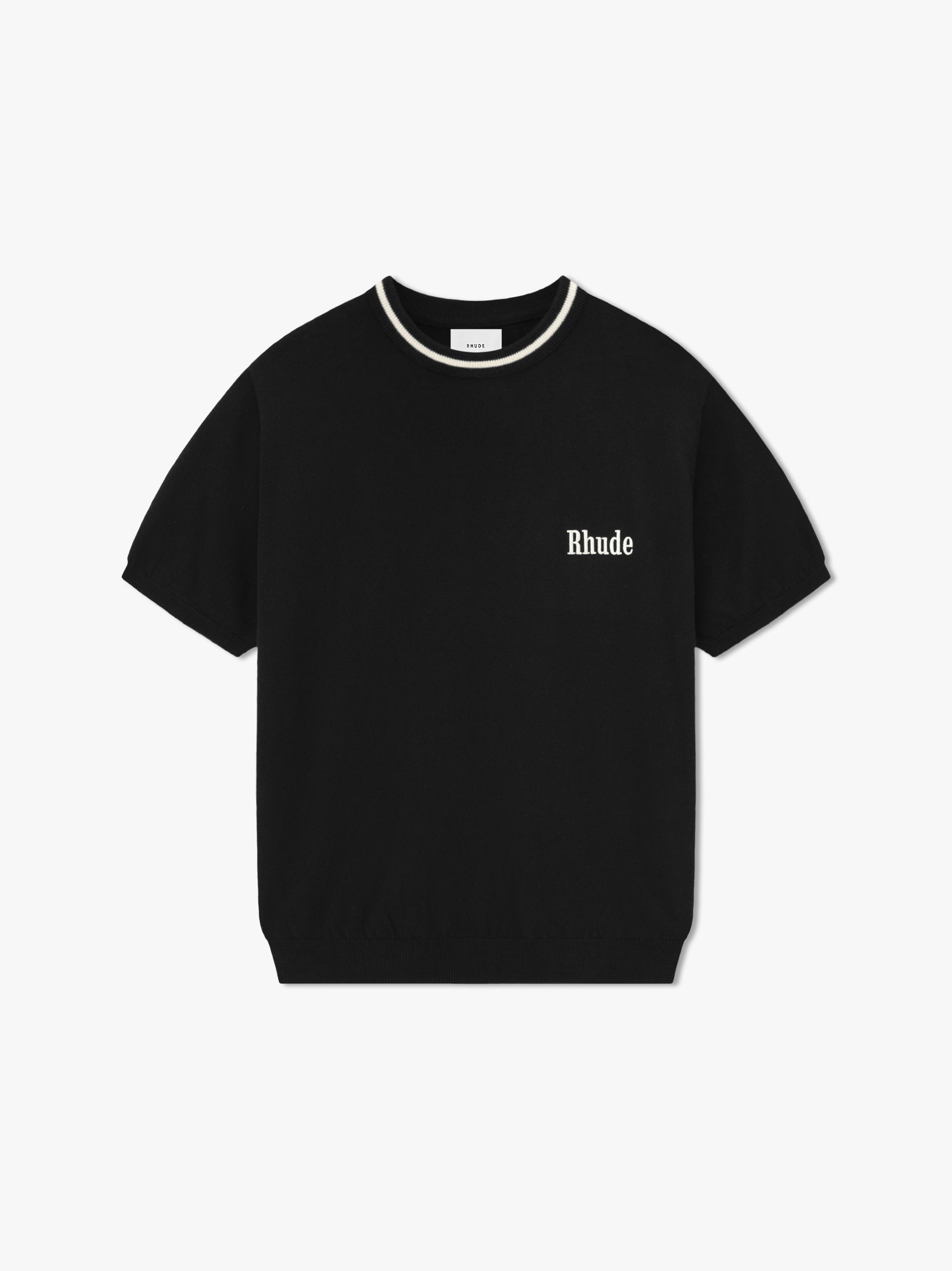 Custom-fit cashmere short sleeve tee-shirt with Rhude Logo embroidered on the front, and a ribbed knit collar.