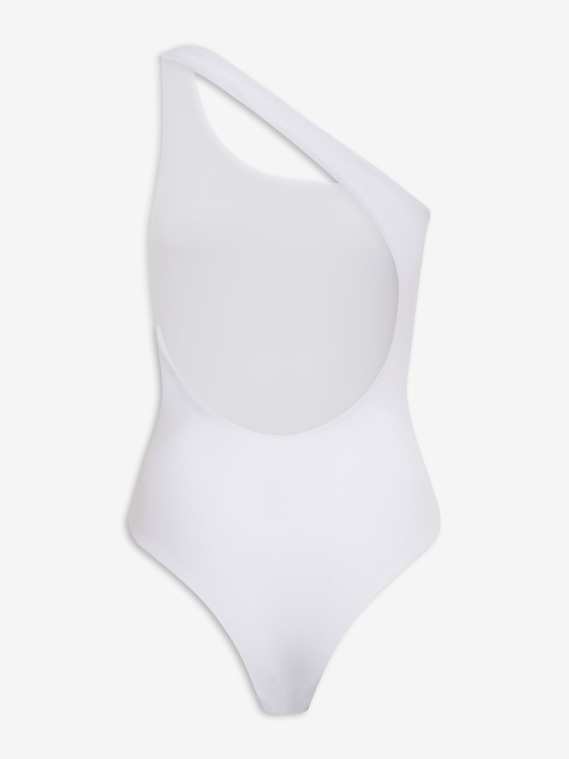A one-piece bikini designed with a high-cut waist to accentuate an hourglass figure. This stylish piece showcases the RHUDE Logo printed on the front, and a diagonal strap detail at the back.