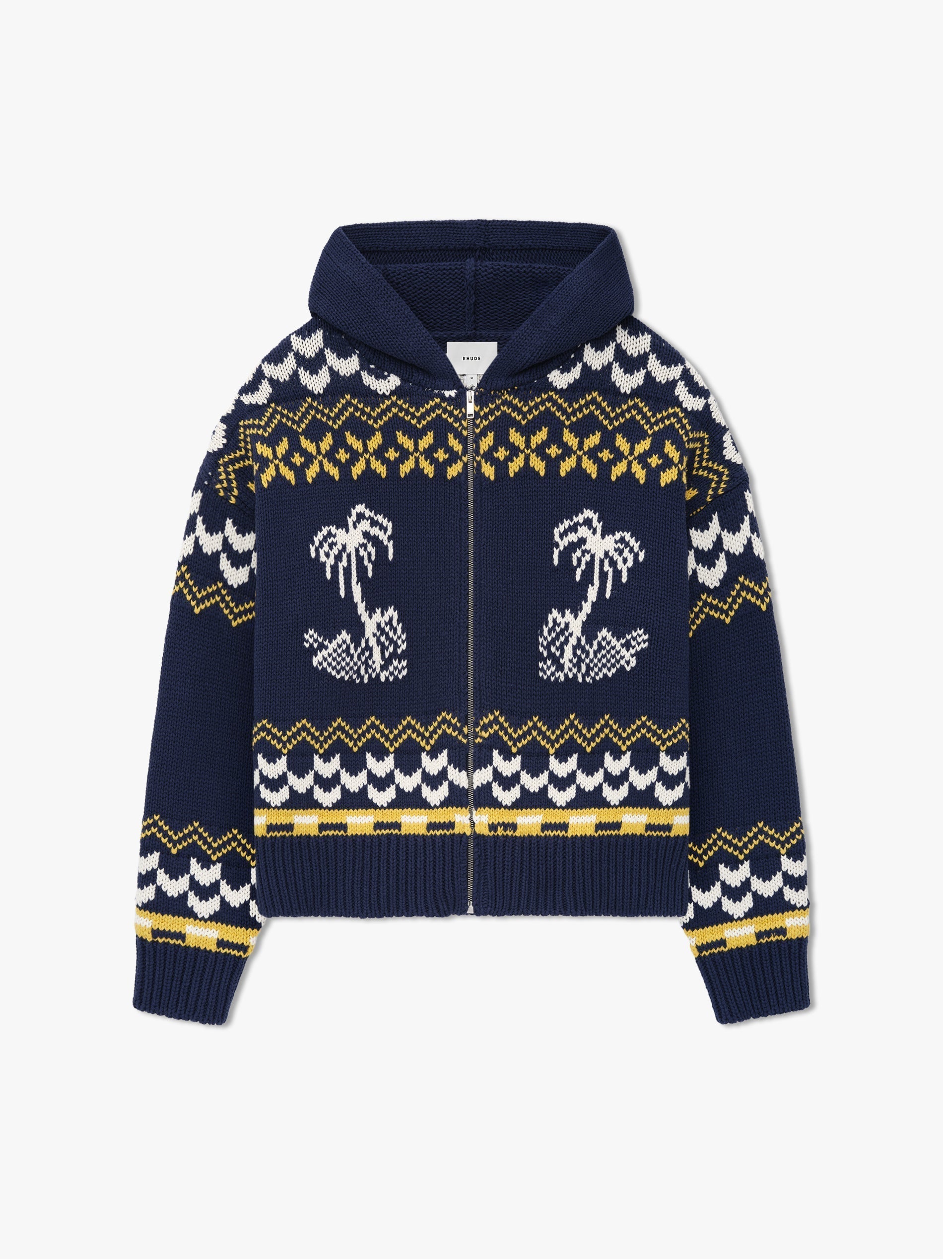 Handcrafted from a recycled blend of premium cotton and cashmere, this Full-Zip Sweater showcases a custom fit, complemented by drop shoulder sleeves, rib-knit cuffs and hem. Features intricate embroidery throughout.