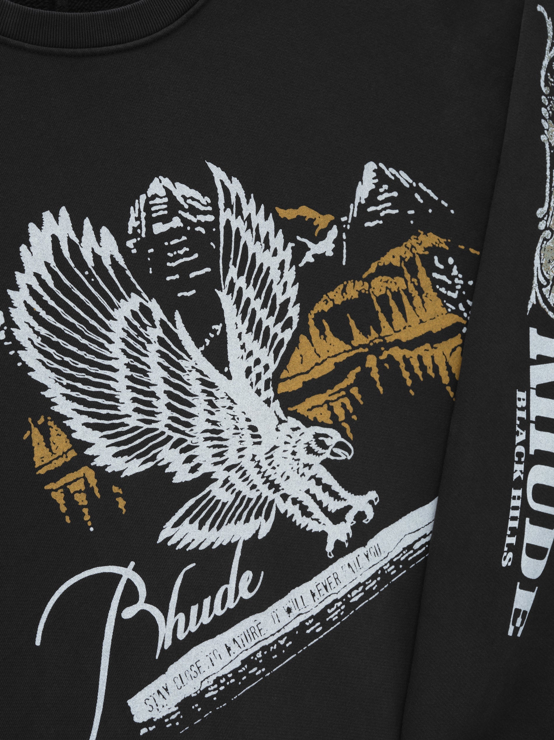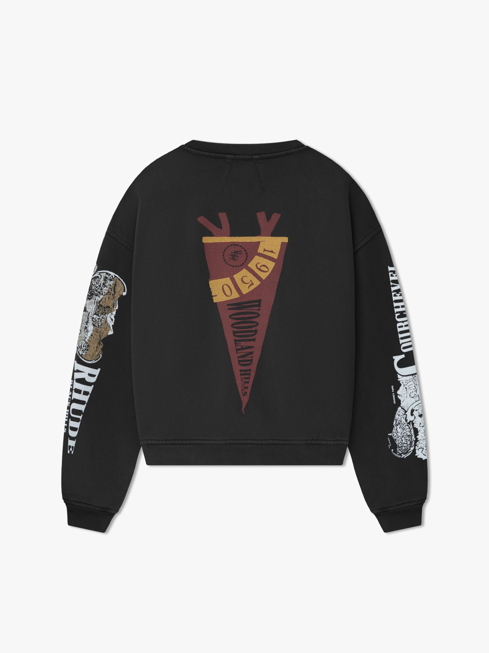 Long sleeve crewneck with signature graphics printed on the front, sleeves and flag on back Featuring a kangaroo front pocket and dropped shoulders.