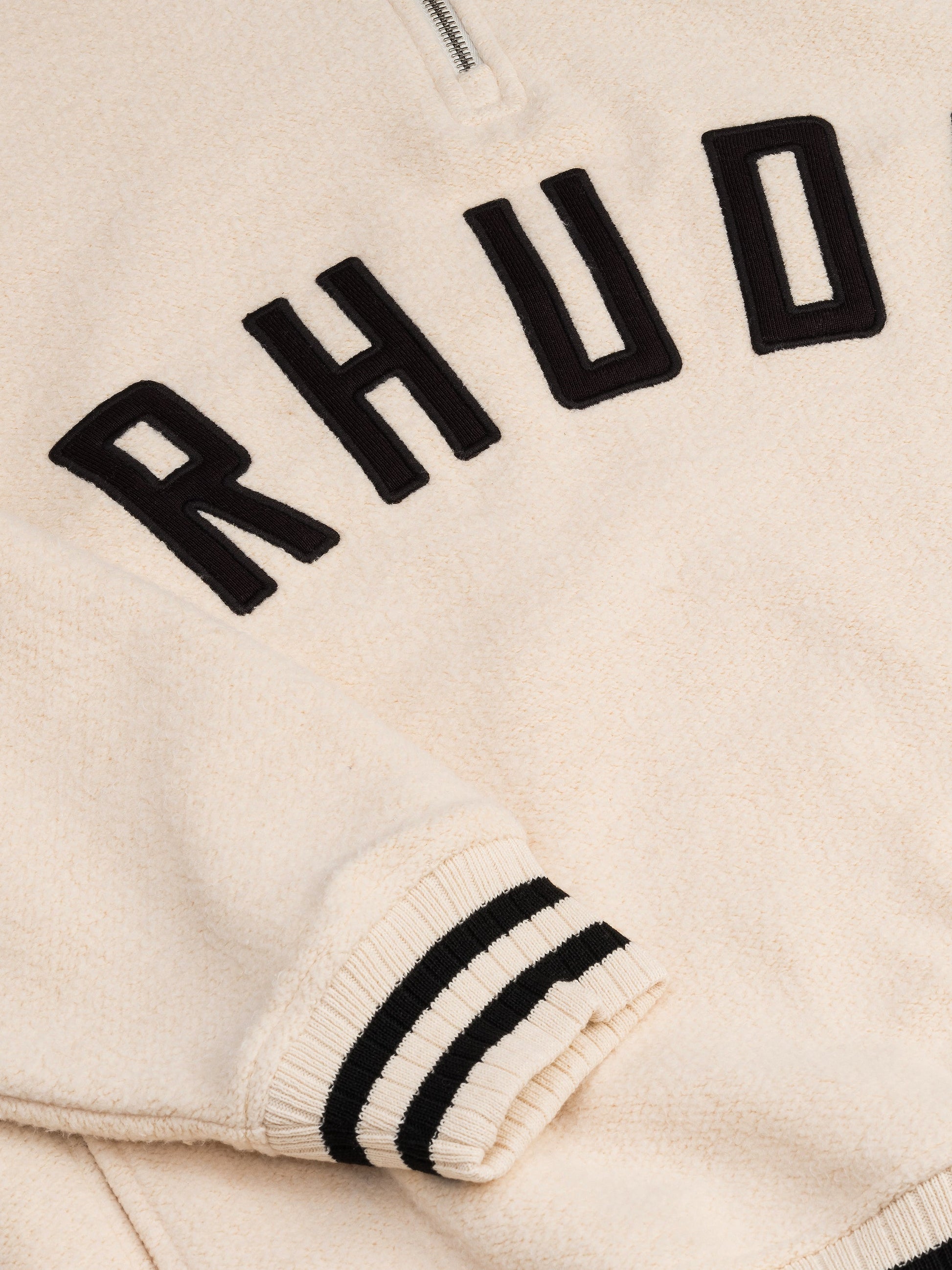 Lightweight quarter-zip jacket showcases embroidered RHUDE lettering on the front. It comes with a quarter zipper closure and features ribbed collar, waist, and cuffs for added style and comfort.