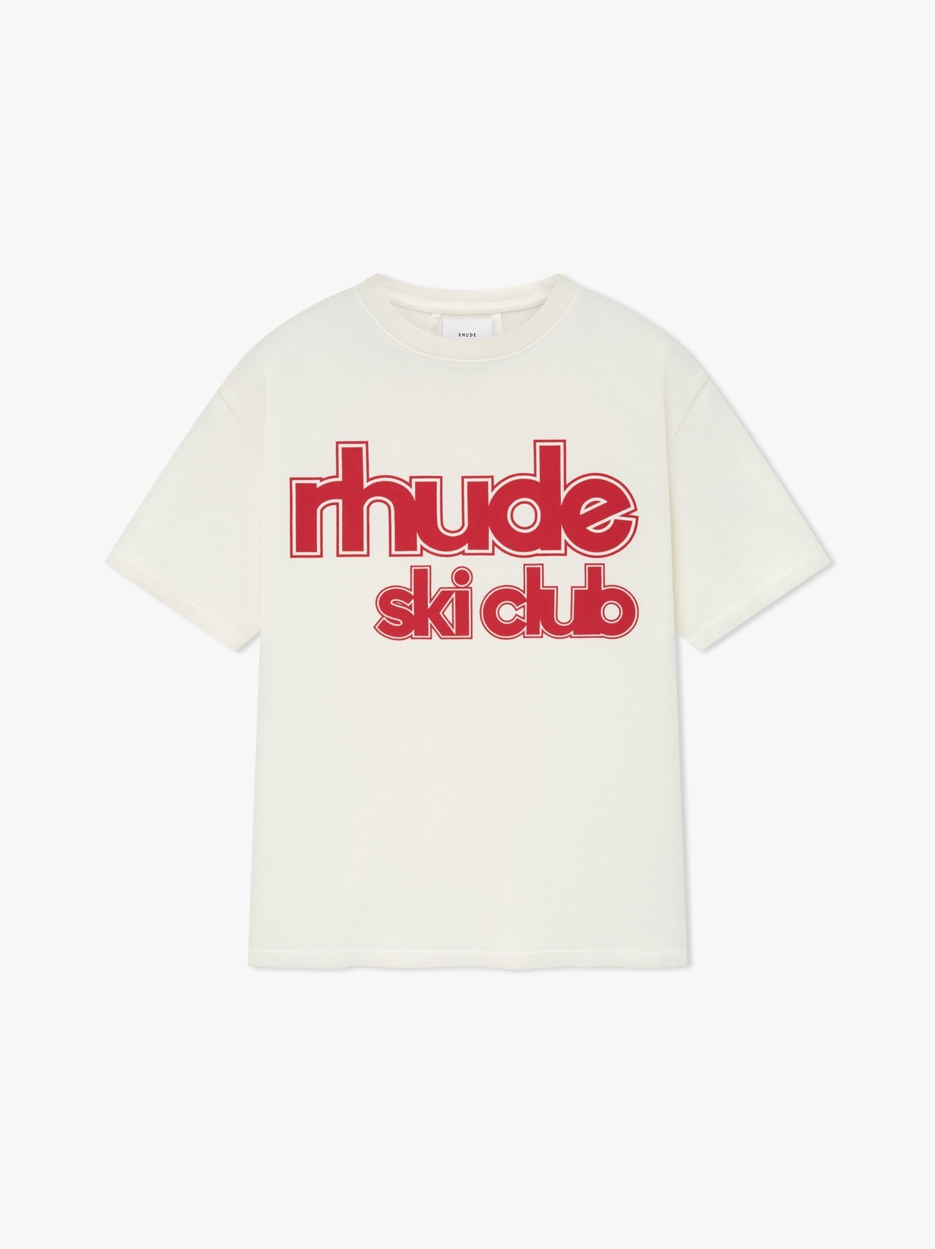 Custom-fit vintage wash cotton short sleeve tee-shirt with Rhude Ski Club graphics printed at front.