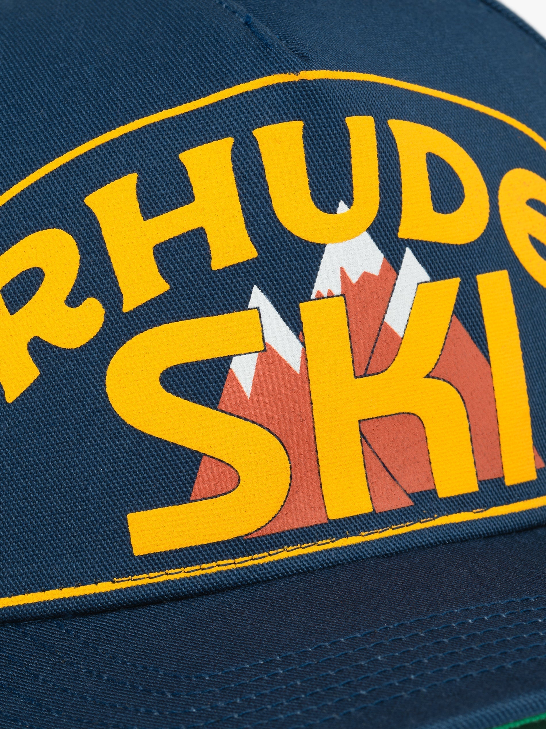 Heavyweight poly/cotton blend hat with "RHUDE" beach club inspired designs embroidered on the front. Features an adjustable strap at the back, so you can adjust the fit to your preference, and green under brim.