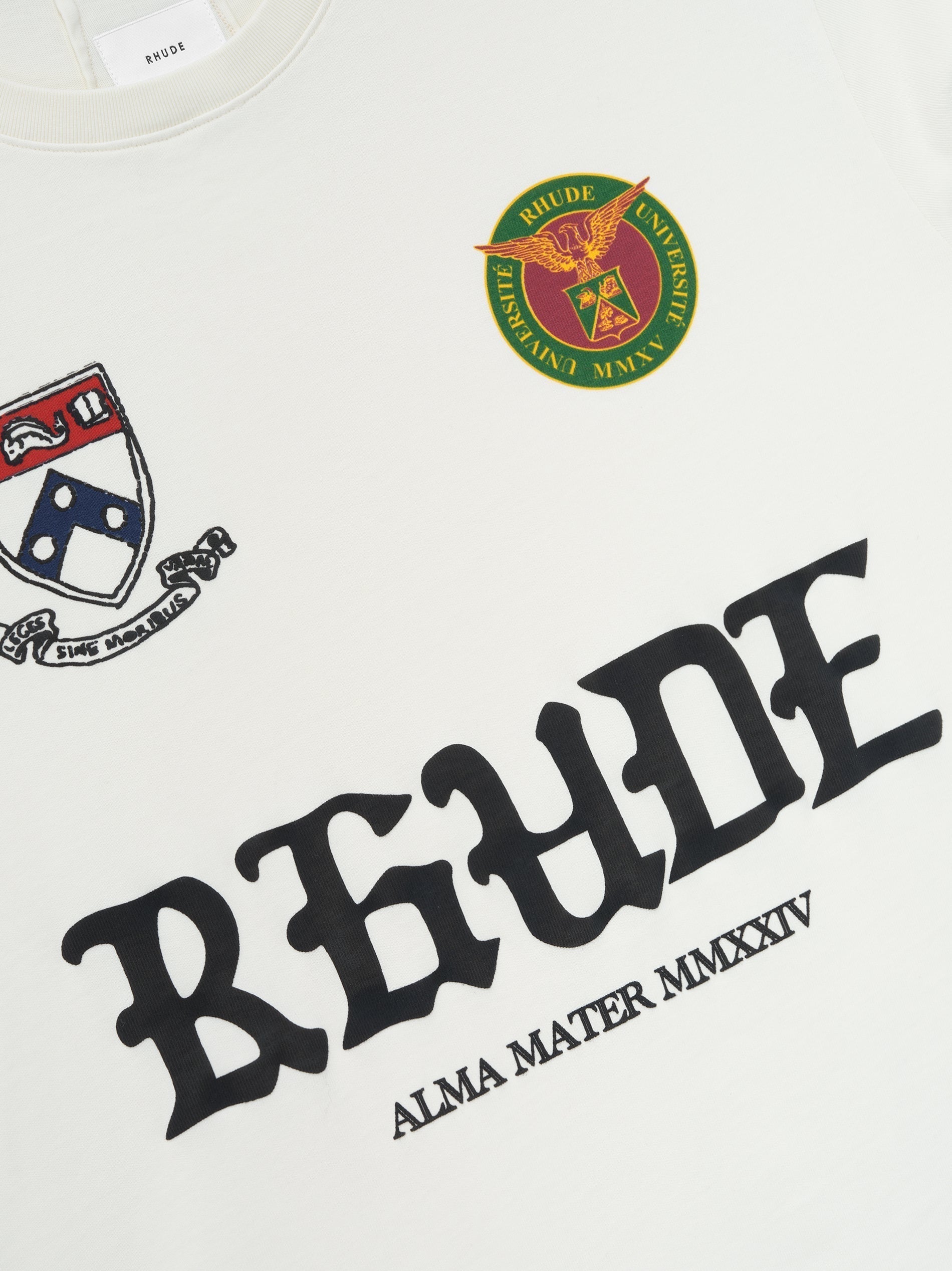 Custom-fit vintage wash cotton short sleeve tee-shirt with Rhude Runway Script graphics + crests printed at front chest, with a clean back.