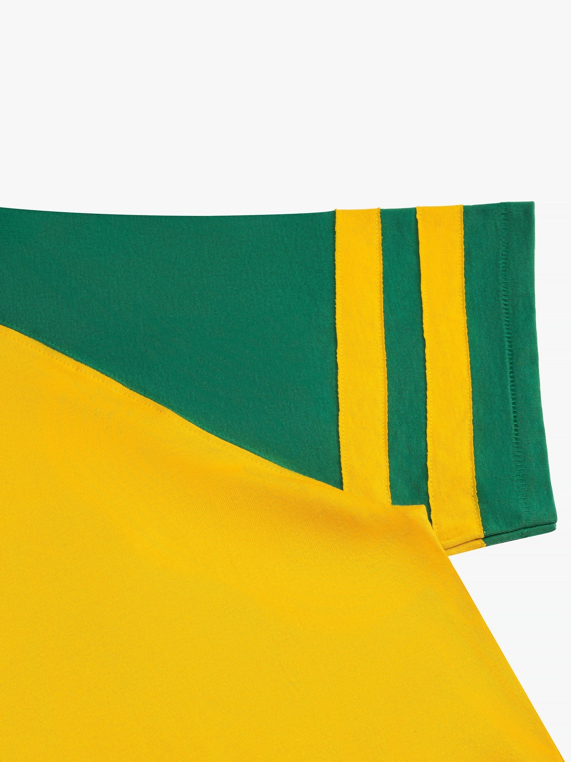 Premium short sleeve tee crafted from soft, lightweight jersey fabric. Features a comfortable and relaxed custom Rhude fit. Ribbed neck and sleeves, with Rhude Sao Paulo inspired design printed at front chest. The dual stripe design on the sleeves adds a sporty touch to this classic short sleeve.