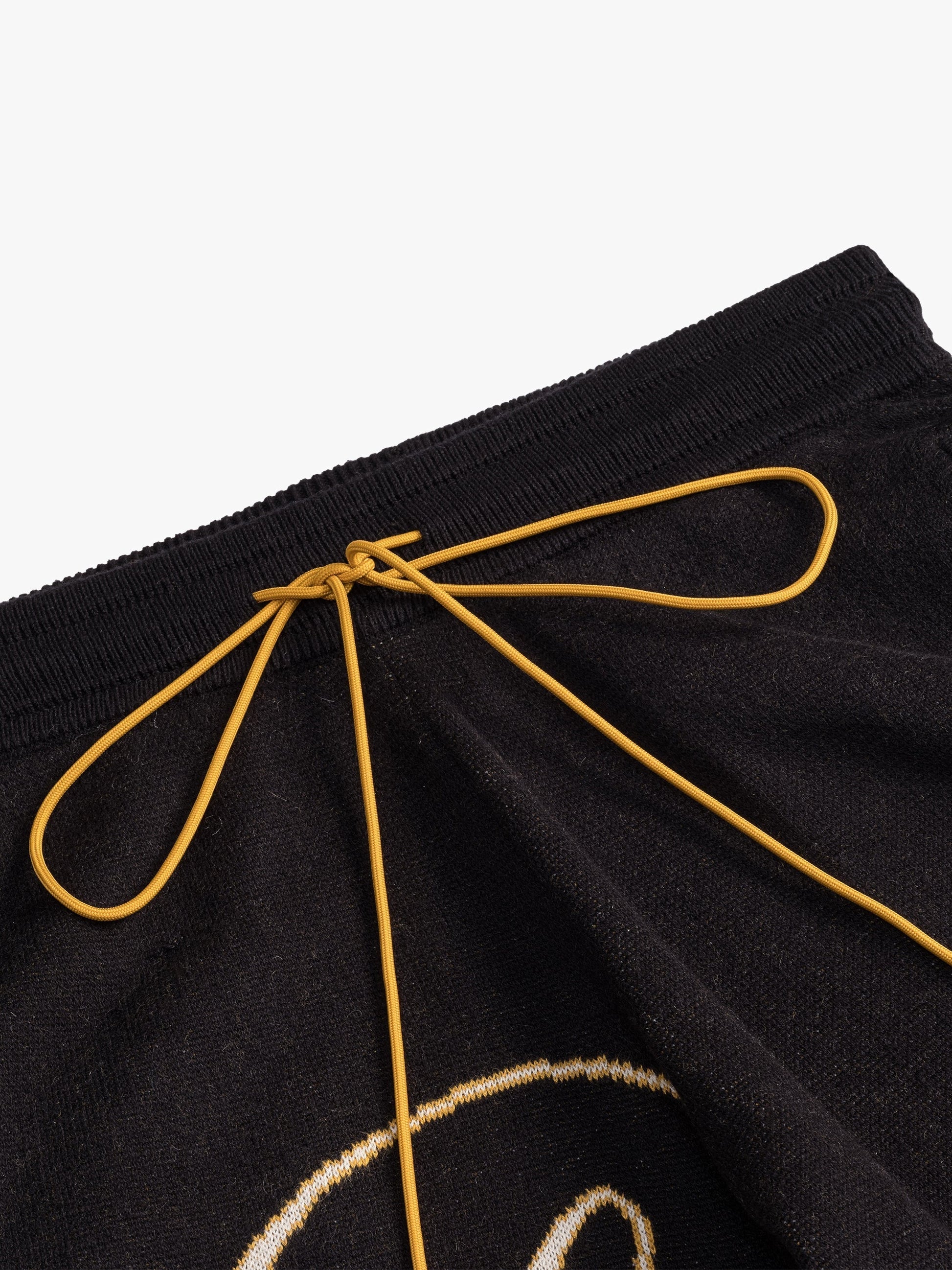 Premium cashmere-supima cotton blend short with Rhude script Logo across front legs. Featuring twin side pockets, single back pocket, and extended drawstrings in our signature mustard tone.