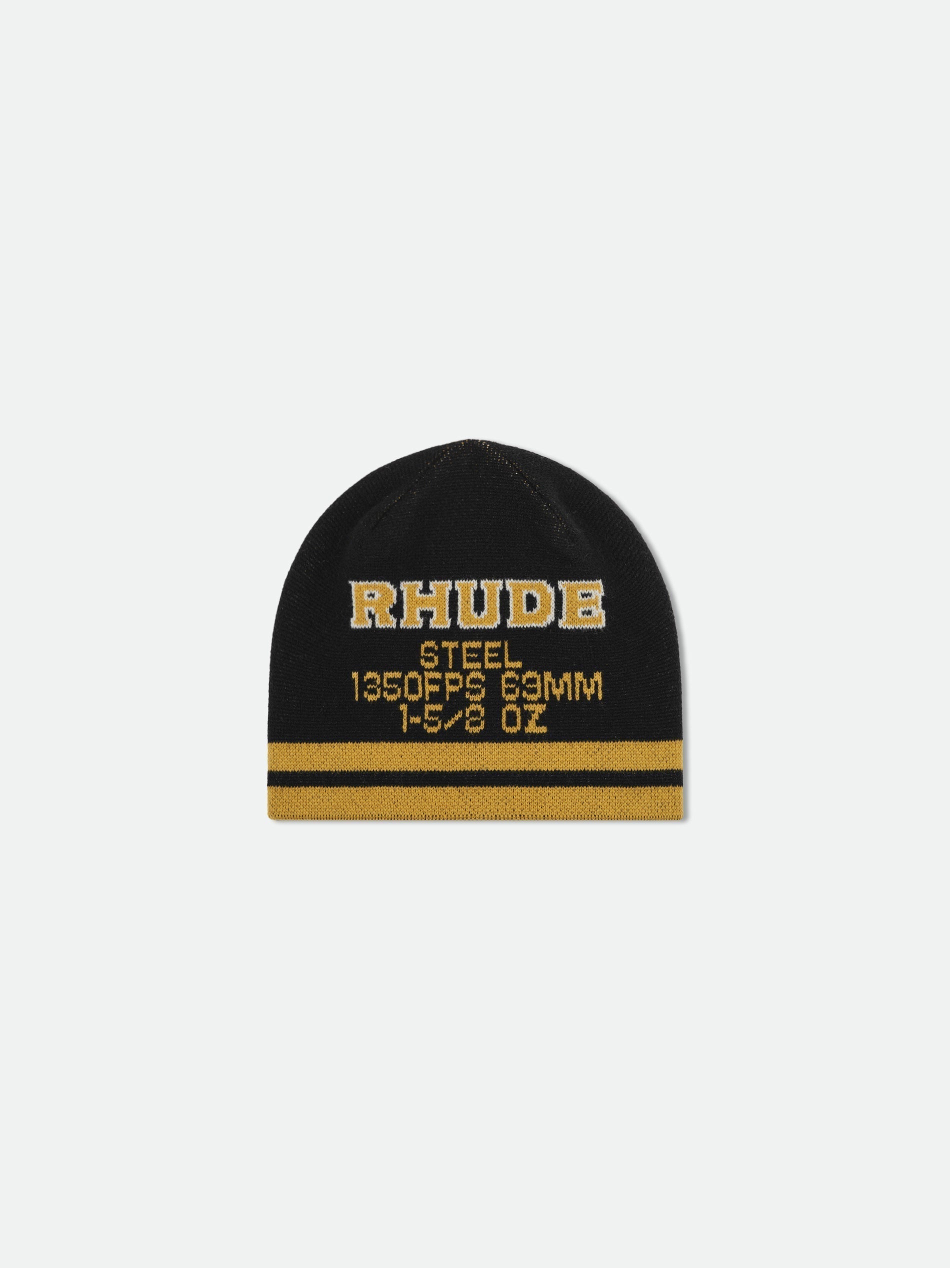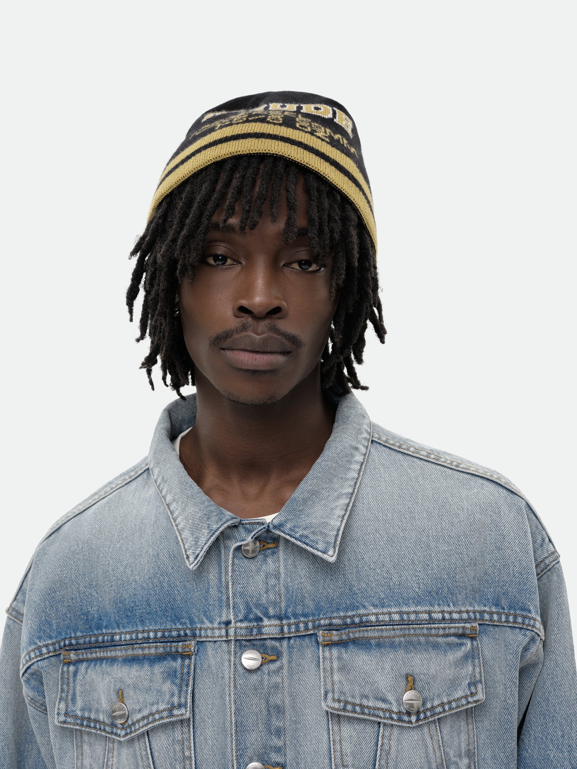 This luxurious knit beanie is expertly crafted from a high-quality cotton cashmere blend, complemented by the iconic Rhude design with collegiate striping.