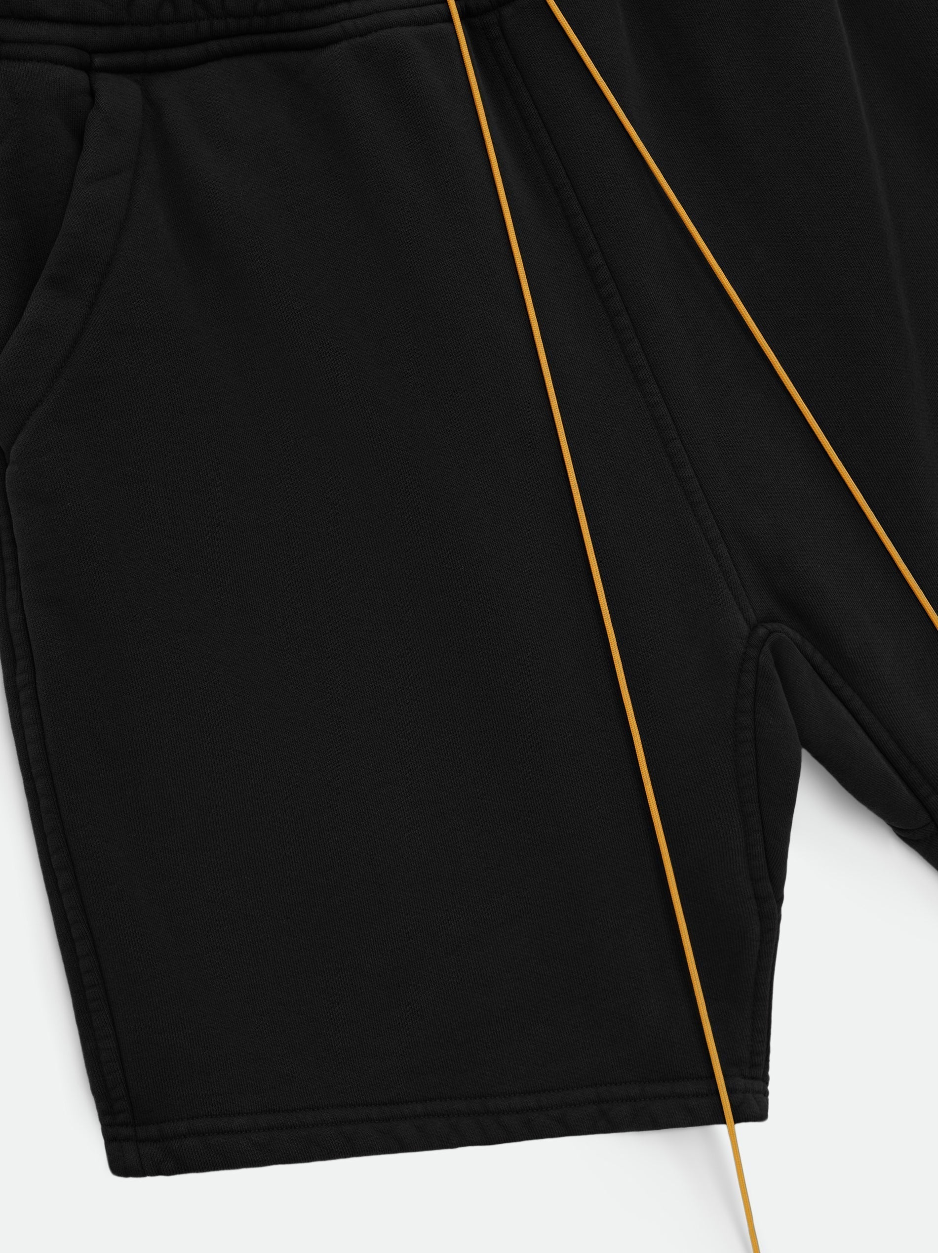 Heavyweight sweat short with signature Rhude logo embroidered on the front, featuring exaggerated drawstrings in our signature Mustard tone.