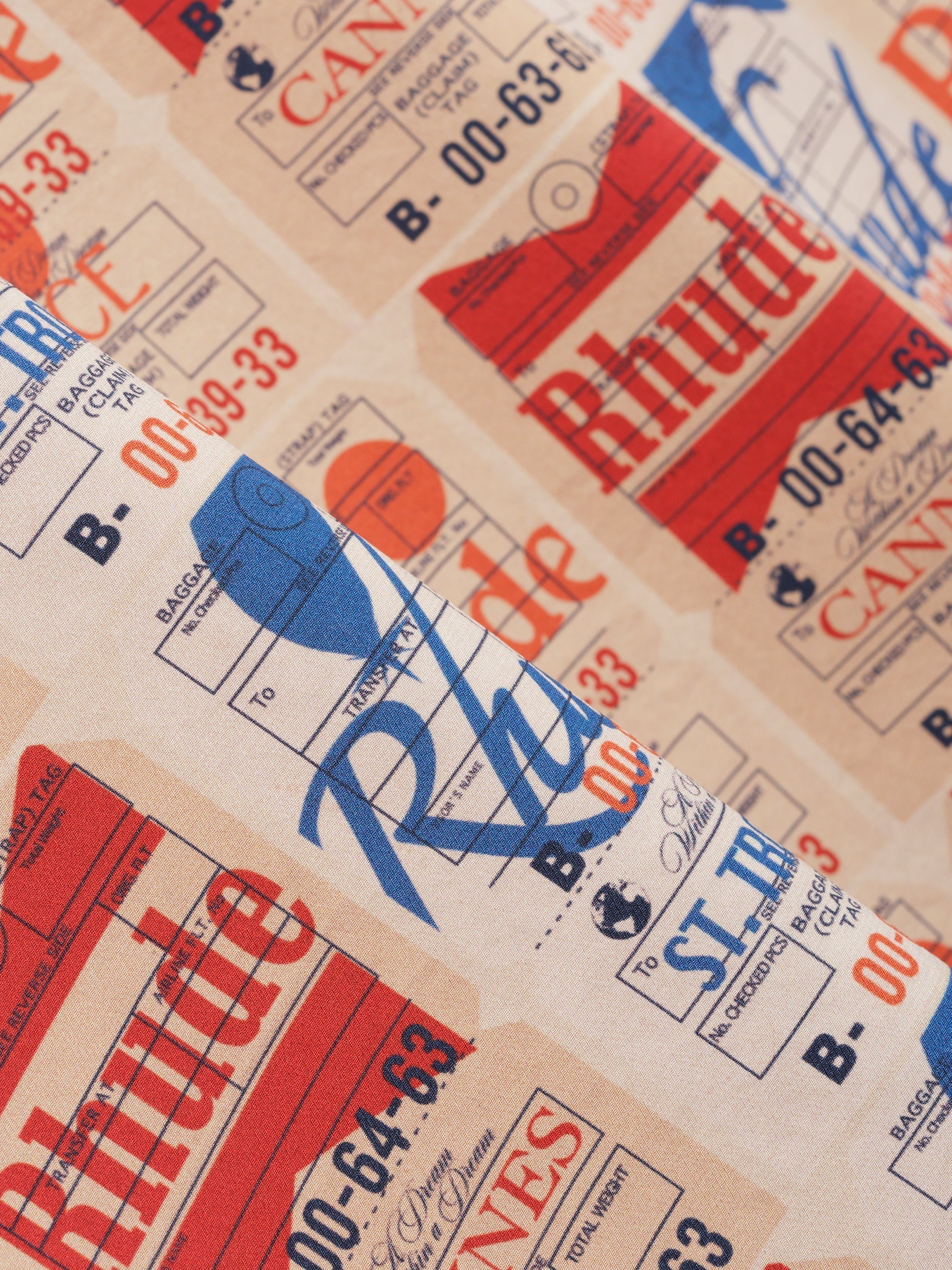 Classic button up shirt crafted from premium quality silk. Featuring a flat hem, custom button closures at front, and RHUDE voyage envelope designs all over.