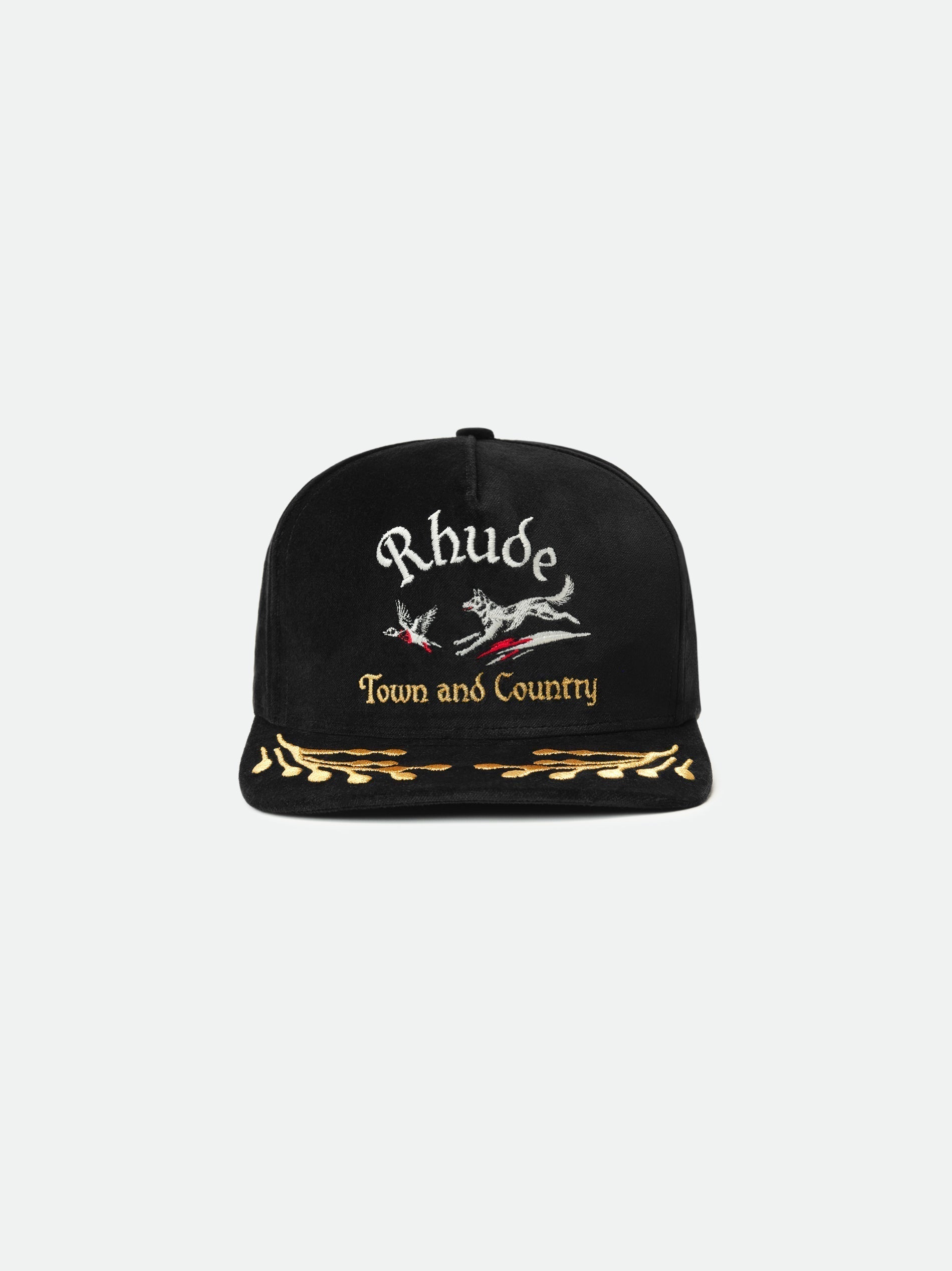 Heavyweight vintage trucker cap with Rhude logo on the front panel. Back panel is constructed with a breathable mesh material. Features an adjustable snap strap at the back, so you can adjust the fit to your preference, and green under brim.